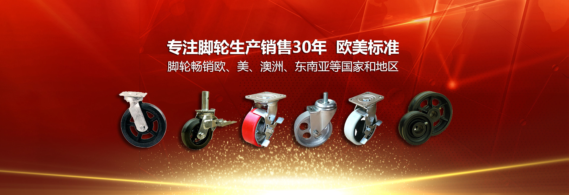 公司專(zhuān)注從事重型腳輪等產(chǎn)品的生產(chǎn)和研究達(dá)30余年,產(chǎn)品均按照歐美發(fā)達(dá)國(guó)家標(biāo)準(zhǔn)設(shè)計(jì)和制造。多年來(lái),我公司生產(chǎn)的系列腳輪及相關(guān)輪類(lèi)產(chǎn)品和五金制品一直暢銷(xiāo)歐、美、澳洲、東南亞等國(guó)家和地區(qū)。